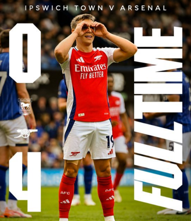 英超联赛第 33 轮,伊普斯维奇主场对阵阿森纳。上半场特罗萨德穿裆破门,马丁内利扩大比分,戴维斯铲倒萨卡染红,萨卡多次制造威胁。下半场厄德高打门险些得手,特罗萨德再下一城,恩瓦内里折射破门。最终阿森纳 4-0 完胜伊普斯维奇。