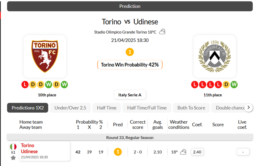 Torino have not suffered any defeats in their 7 most recent home Serie A matches