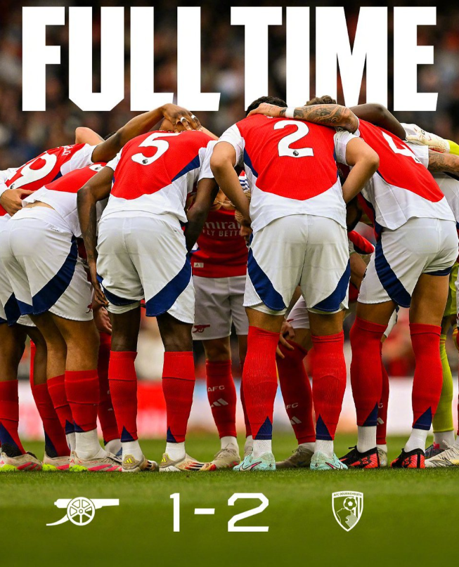 英超第35轮,阿森纳主场1-2不敌伯恩茅斯,遭遇赛季双杀。上半场赖斯破门帮助枪手领先,但下半场赫伊森和埃万尼尔松连入两球完成逆转。