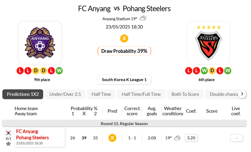 - FC Anyang are on a poor run of just 1 wins in 6 matches (K League 1)