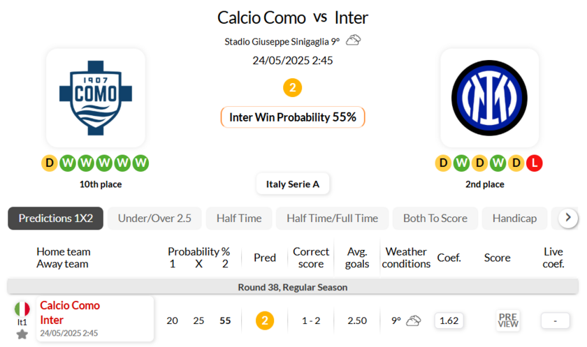 -Inter have succeeded in winning by 2 or more goals in their last 3 games against Calcio Como in Serie A