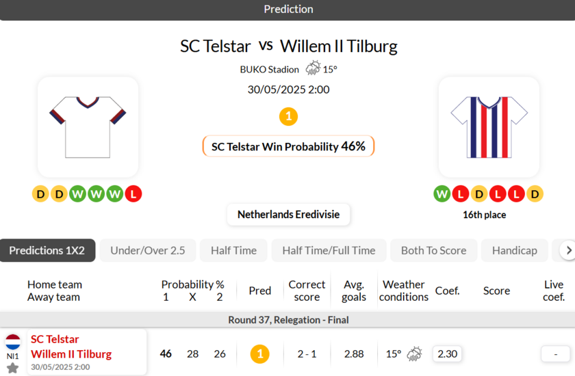 - Willem II Tilburg's performance has been disappointing of late, as they have won just 3 of their 24 most recent Eredivisie clashes.