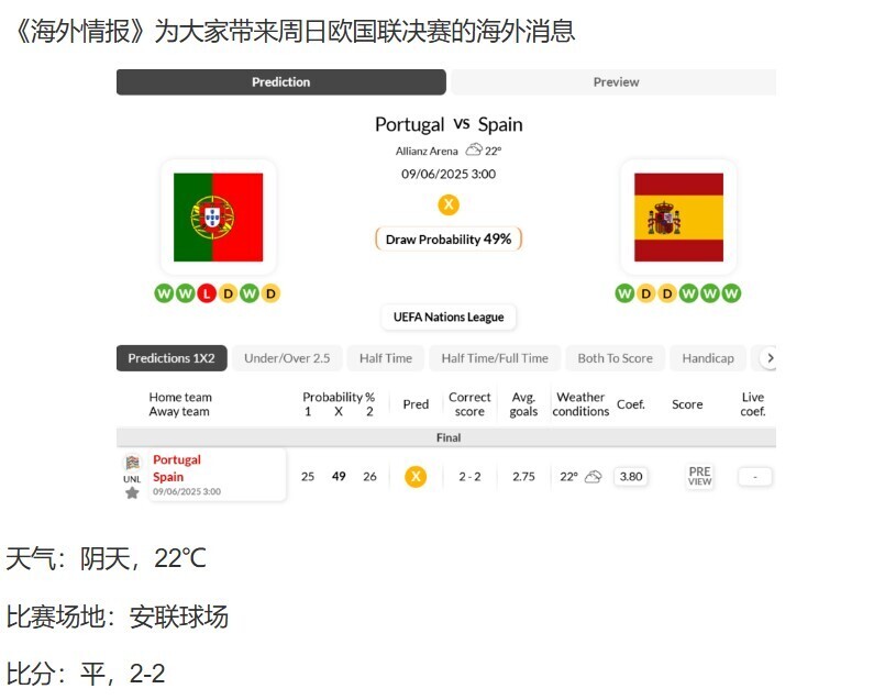 nba直播讯 北京时间6月9日,葡萄牙与西班牙在欧国联决赛上演巅峰对决。