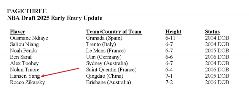 Hansen Yang:来自中国青岛,身高7 - 1,2005年出生。