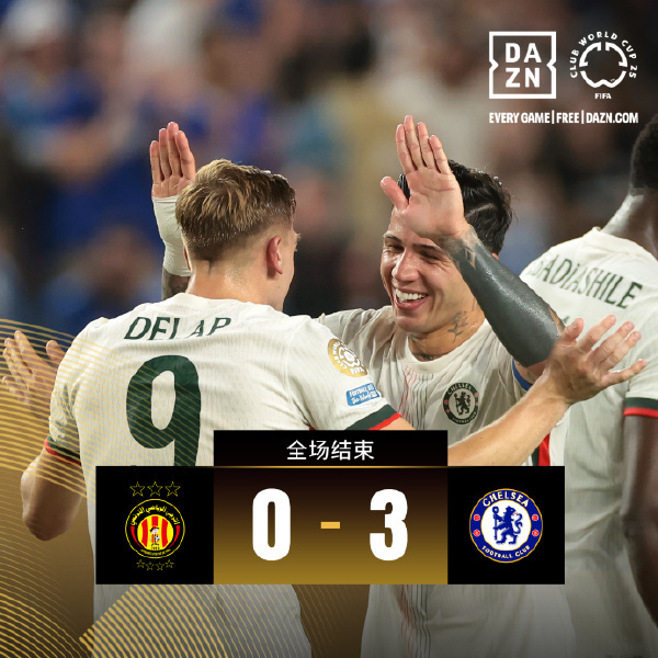 nba直播讯 北京时间6月25号,世俱杯小组赛D组第3轮突尼斯希望vs切尔西,上半场补时阶段,恩佐2分钟助攻双响!阿达拉比奥尤、德拉普破门先后破门,半场切尔西2-0领先,下半场补时阶段,乔治远射,对手门将黄油手将球漏进球门!最终,切尔西3-0击败突尼斯希望,小组第二出线,1/8决赛将对阵本菲卡,突尼斯希望排名小组第三出局。