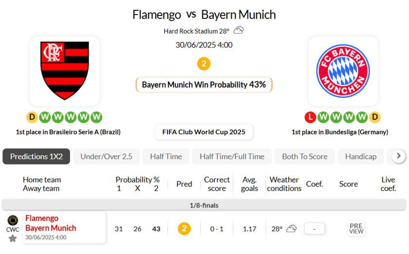 -On average, Bayern Munich have allowed 0.67 goals in their most recent games in FIFA Club World Cup 2025.