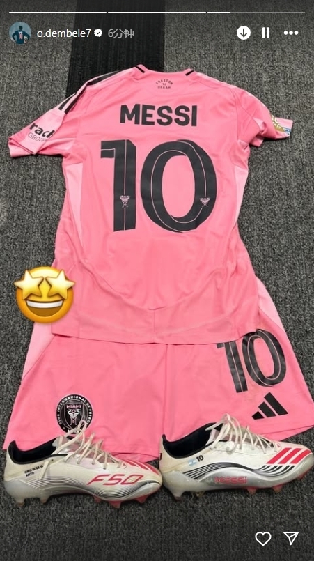 nba直播讯 在世俱杯1/8决赛中,巴黎圣日耳曼以4-0大胜迈阿密国际,顺利晋级八强。赛后,替补登场的登贝莱在社交媒体上晒出了梅西的球衣、球裤和球鞋,这一举动引发了球迷们的广泛关注。登贝莱还晒出了与梅西的合照,并配文表示很高兴再次见到梅西,称赞其为“史上最佳球员”。此外,登贝莱还晒出了苏亚雷斯和阿尔巴的球衣,显示出他对这些前队友的深厚感情。
