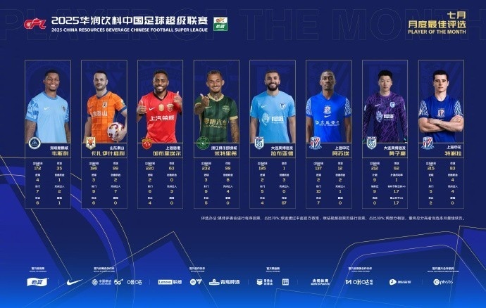 nba直播讯 北京时间8月7日,中超官方公布了7月最佳球员候选名单,共有8位候选人,其中国内球员仅有来自大连英博门将的黄子豪,其余七人均是外援,韦斯利、卡扎伊什维利、加布里埃尔、米特里策、拉布亚德、阿苏埃和特谢拉。