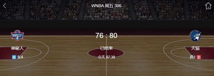 nba直播讯 北京时间8月9日,WNBA常规赛,明尼苏达山猫80-76击败神秘人,山猫方面阿兰娜-史密斯砍下25+4+5,考特尼-威廉姆斯14+5+2;神秘人方面索尼娅-西特隆空砍26+4+1,伊莉亚芬12+4+9。