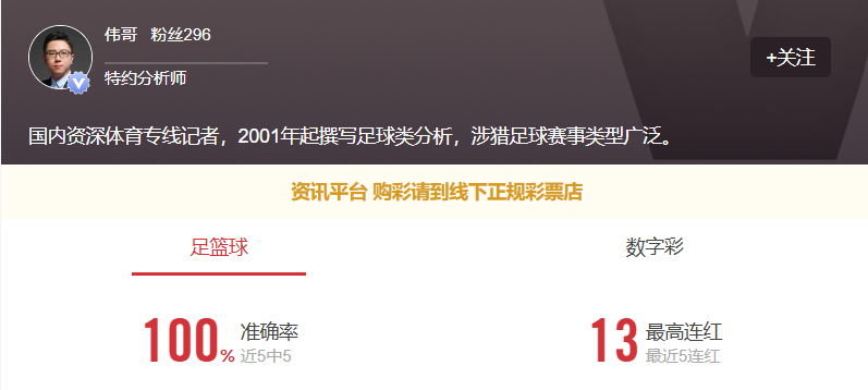 专家伟哥状态极佳!今日有早场推荐不要错过,点击本段文字即可获取