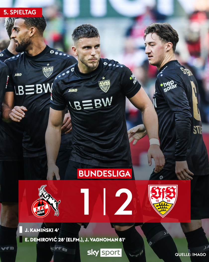 北京时间9月28日,德甲第5轮,科隆主场迎战斯图加特。第4分钟,卡明斯基破门,科隆1-0领先。第28分钟,德米罗维奇点射扳平,1-1。第81分钟,施蒂勒助攻瓦格诺曼推射反超比分,2-1。最终斯图加特2-1取胜。这场比赛斯图加特在落后的情况下展现了强大的逆转能力,球员们在进攻端的配合默契,防守端也成功限制了科隆的反击,最终凭借瓦格诺曼的关键进球锁定胜局。