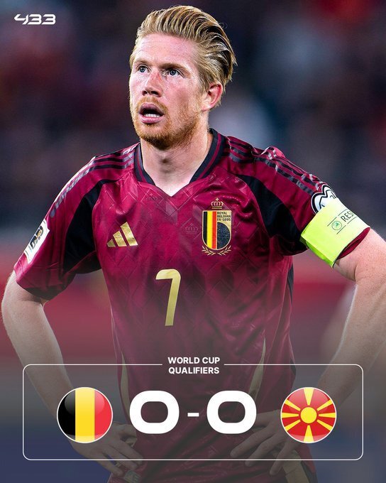比利时0-0北马其顿:世预赛小组赛J组,比利时主场对阵北马其顿。第17分钟,德布劳内推射空门得手,但队友越位在先被吹罚无效。随后比利时多次制造威胁,但未能改写比分。全场比赛,比利时控球率高达80%,射门25次,最终两队0-0握手言和。本轮过后,比利时5场3胜2平以11分排在小组第二,北马其顿多赛1场以3胜3平积12分排在第一。