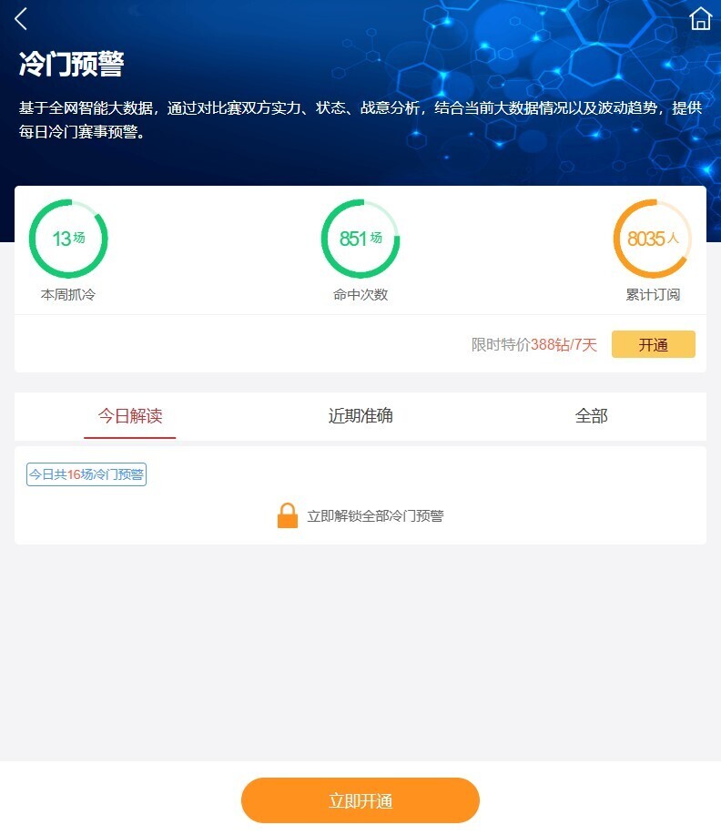 【冷门预警】发布高能警报:今日多场重点赛事冷门指数爆表,部分场次冷门预警值已达到7分速来锁定详情!