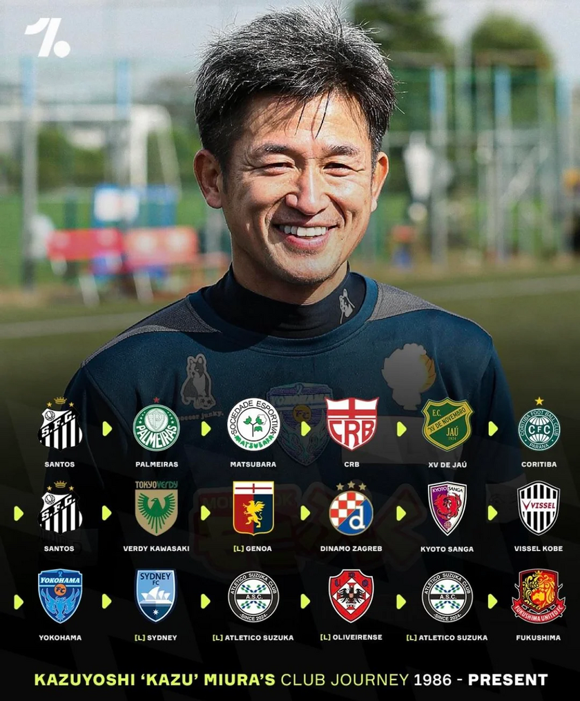 赛季结束后,三浦知良回到了川崎绿茵效力,随后他的足迹遍布四大洲,从意甲热那亚到克罗地亚萨格勒布迪纳摩,从澳大利亚悉尼FC到葡甲的奥利维伦斯,无论身处巅峰还是低谷,他对足球的热情从未消减。