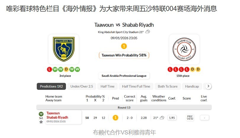 海外情报精准命中!海外情报:布赖代合作2-0利雅得青年