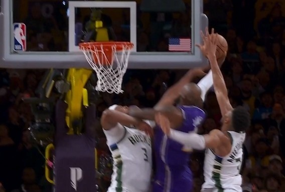 nba直播讯 北京时间1月10日湖人101-105雄鹿一战,詹姆斯在最后40.5秒突破上篮时被特纳明显打手,裁判未吹罚,他赛后在IG晒出被打手照片配捂脸表情表达不满。