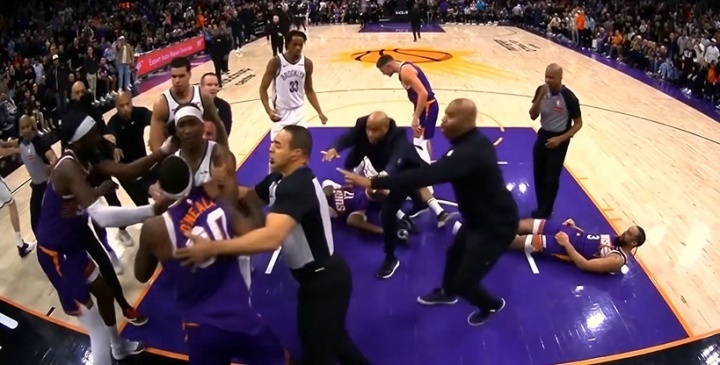 nba直播讯 北京时间2026年1月28日,NBA两场常规赛(太阳vs篮网、雷霆vs鹈鹕)均爆发大规模冲突,前者比赛中5人吃技犯,后者终场后双方互揪衣领、场面失控,具体经过与判罚/后续如下: