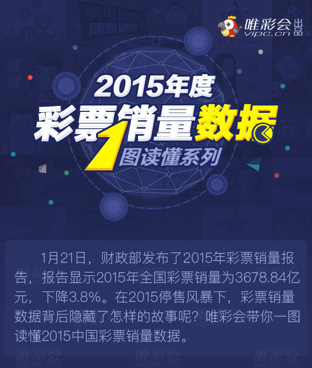 1月21日,财政部发布了2015年彩票销量报告,报告显示2015年全国彩票销量为3678.84亿元,下降3.8%。在2015停售风暴下,彩票销量数据背后隐藏了怎样的故事呢?24直播网带你一图读懂2015中国彩票销量数据。