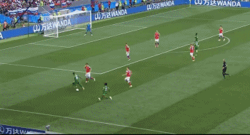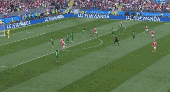 第42分钟,佐布宁分到禁区左侧,切里舍夫轻巧一挑晃过两名防守球员,最后起脚抽射破网,俄罗斯2-0沙特阿拉伯!