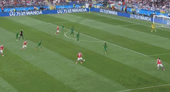 比赛进行到11分54秒,戈洛文传中,加津斯基甩头攻门,2018世界杯一血诞生!