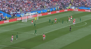 下半时,戈洛文的表现依然相当出彩。他在右路拿球后顺势杀入禁区,随后再次传出漂亮的弧线球,这一回,为俄罗斯队建功的则是久巴!戈洛文2次无比漂亮的传中球,皆让队友轻松的头槌轰开了沙特队的球门。