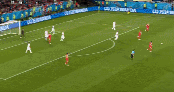 第89分钟塞尔维亚传中!禁区中路头球被破坏出来,瑞士球员外围得球,向前给了一脚直塞球!中圈位置沙奇里把球得到!转身形成单刀!!面对门将把球打进!帮助瑞士2比1反超比分。