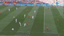 上图是淘汰赛首轮对阵东道主俄罗斯,西班牙队展现出的核心问题就是只有伊斯科与伊涅斯塔两个控球点下球队整体缺乏足够的跑动,然后形成了空有外围传递却难以在核心区域制造机会的实际。而此前洛佩特吉重点演练的伊斯科与伊涅斯塔高位组织调度(俩人持球出色但是却没有爆点破局的速度)下,充分发挥阿斯帕斯与阿森西奥冲击的战术并没有得到耶罗的延续。