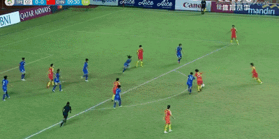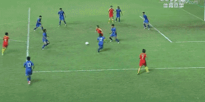 比赛第88分钟,中国队前场抢断后分球至禁区内,赵容得球后轻巧一扣,但随后的射门被门将扑出。