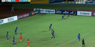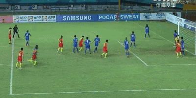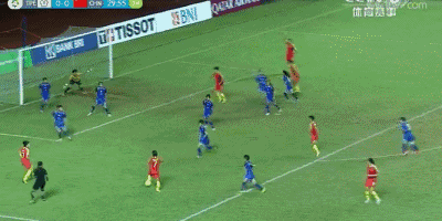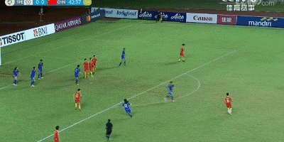 比赛第43分钟,中国队禁区前沿一脚远射,但皮球高出了横梁。