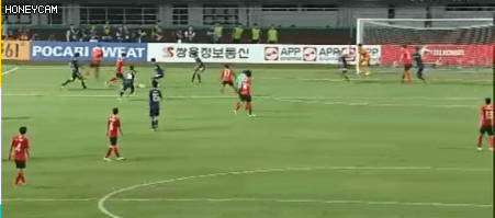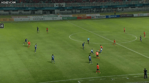 比赛仅第6分钟,韩国队黄义助就错失空门机会!孙兴慜中路持球推进,大禁区前沿面对防守球员将球分给禁区右侧的黄仁范,黄仁范并不贪功,面对出击的小岛亨介,他将球送到了后门柱位置,只可惜跟进的黄义助未能碰到皮球,错失打空门得分的机会,韩国队队员纷纷抱头表示难以置信。