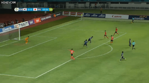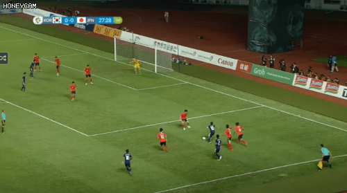 第87分钟,日本队后场突然直塞球打的韩国队措不及防,三好康儿右侧送出倒三角传球,只可惜中路跟进的岩崎悠人没能踢正部位,再想补射,被解围。