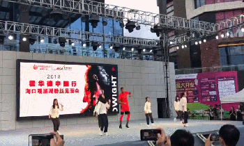 霍华德正在海口展开中国行,今天的一次活动中,他在现场展示了自己的舞技。