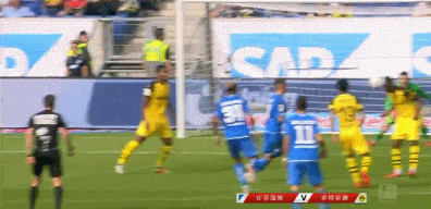 第44分钟,霍芬海姆利用多特失误先开记录。迪亚洛禁区中路头球解围不远,若埃林通断球后左脚铲射破门,1比0!若埃林通打入赛季首球。