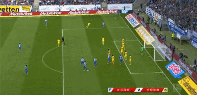 第18分钟,霍芬海姆快速反击,舒尔茨左路精准横传,禁区中路无人盯防的比当古右脚推射被布尔基神勇封出,这是两队此役第一次射门。第21分钟,达胡德拉倒祖贝尔被黄牌警告。