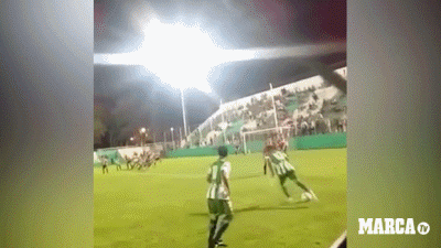 阿根廷丙级联赛德桑帕拉多斯vs迈普,11号球员丰达卡洛一记“反向弧线任意球”破门。