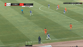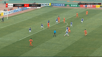 上半场河内利用脚下速率和技术能够较为轻松的完成进攻推进,而鲁能在前场毫无强度的防守,让对手的推进显得更加轻松。图中看到,鲁能在前场并没有给阮光海施加足够的压力,甚至没有实质性的身体对抗,防守就像在做做样子。在不设防的情况下,阮光海的技术能力能够充分发挥,球队也能够迅速完成推进。
