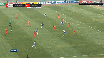 加强了中前场的防守强度,鲁能在地位防守的强度同样明显提高。图中看到,对手在前场的持球遭遇到鲁能不断的冲击和上抢,格德斯已经回撤到中场协助防守。