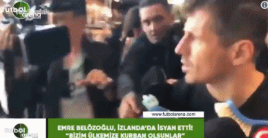 土耳其队长埃姆雷-贝洛佐格鲁(Emre Belozoglu)在接受媒体采访时,一名男子冲着他的脸举马桶刷充当话筒。