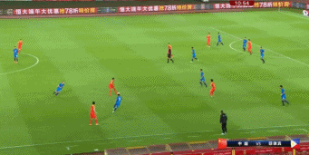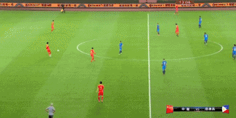 从上图我们可以看到,在蒿俊闵与池忠国先后回撤与前提的时候,右中卫高准翼的前提能拉开高位宽度。左侧李磊接球之后直接长传,在前场杨旭摆渡之后已经形成了吴曦的二点作业与王刚空挡前插的大好局面,国足最终完成了进球。