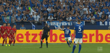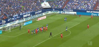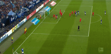 半场战罢,拜仁客场1-0领先沙尔克。易边再战,第50分钟,托利索在沙尔克弧顶为拜仁赢得任意球。莱万随后主罚任意球,一脚大力射门直接命中大门左上角,0-2!