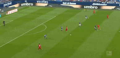 第75分钟,托利索后场挑传科曼,科曼随后杀入对方肋部后横敲,莱万领球顺势转身抽射破门上演帽子戏法,0-3!