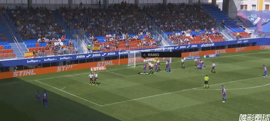 第58分钟,埃瓦尔获得定位球机会,任意球罚出一记传中球,禁区里左侧拉米斯跟上头球一顶,把球顶入了球门右侧!西班牙人0-1落后埃瓦尔!