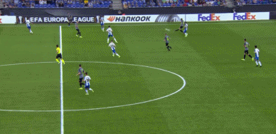 第45分钟,西班牙人前场反抢成功,巴尔加斯中路得球,没有将球塞给跑出空当的武磊,而是弧顶前沿一脚爆射打高。