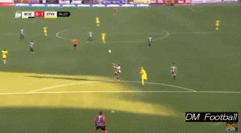 第34分钟,德布劳因送出挑传,铃木优磨快速插上形成单刀。铃木优磨右脚将这个来自背后的高空球稳稳停住,他向前轻轻一趟,然后在失去平衡的情况下捅射破门。追防不及的后卫,与门将撞到了一起,皮球缓缓滚入网窝中。这个停球难度极大,铃木优磨却完成得潇洒写意。