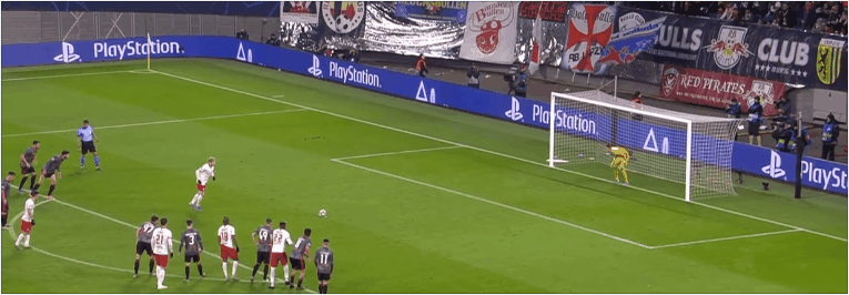 神奇剧情就发生在比赛的最后时刻。第90分钟,本菲卡球员迪亚斯禁区内拉人犯规,主裁判吹罚点球,随后福斯贝里一蹴而就,莱比锡扳回一城,比分来到了1-2。