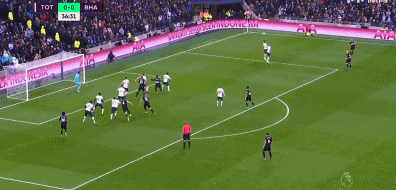英超第19轮,热刺主场迎战布莱顿。第37分钟,布莱顿打破僵局。格罗斯开出右侧任意球,禁区内布莱顿双鬼拍门,中卫韦伯斯特头槌破门。