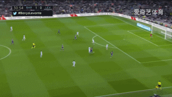 比赛第30分钟时,梅西在本方中场中路背身拿球后不看人送出40米贴地直传,皮球仿佛像精准导弹一样来到小将法蒂的脚下,直接打穿莱万特八人防守,炸裂全场。