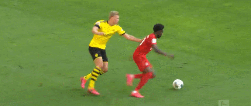德甲联赛第28轮迎来一场焦点战,多特主场对阵拜仁。上半场,哈兰德在一次进攻中,凭借个人能力向拜仁禁区突进,此时,只见后方一道黑影杀出,阿方索-戴维斯快速回追将球解围。哈兰德出生于2000年7月21日,阿方索-戴维斯出生于2000年11月2日,两名00后小将上演了一场精彩的攻防对决。