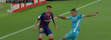 第36分钟,梅西突破时先是被莱加内斯大将布斯廷萨拉住手臂,随后被后者直接抱摔。布斯廷萨因为这个动作吃到黄牌。