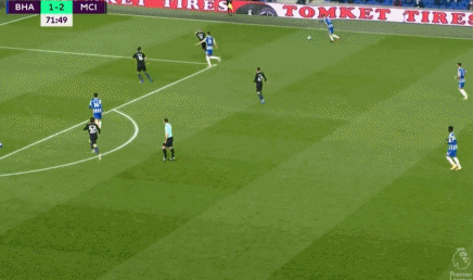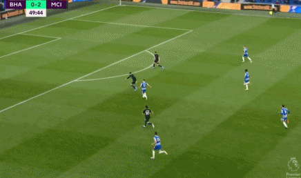 下半时,双方易边再战。第48分钟,曼城快速反击,福登中场左侧得球一路奔袭杀入禁区后左脚推射入网,曼城扩大比分,2-0!第50分钟,场上比分再度被改写,特罗萨德前场中路持球推进,带球趟入禁区后连续内切摆脱防守右脚抽射破门,布莱顿扳回一球,1-2!